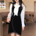 リボンブラウス・ワンピース・セットUPバイカラーのセットUPがかっこいいネックの大きなリボンがエレガントワンピのレースの縁取りが可愛い大人ワンピース■規格・容量色: 画像色素材:ポリエステル 、その他サイズS:トップス:F 着丈60cm、袖丈57cm、胸囲100cm、肩幅36cm/スカート:S 着丈84cm、胸囲78cm、ウエスト64cmM:トップス:F 着丈60cm、袖丈57cm、胸囲100cm、肩幅36cm/スカート:M 着丈86cm、胸囲82cm、ウエスト68cmブラウスはFサイズです